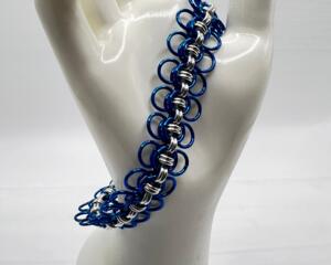 Handmade Celtic Wings Chainmaille Bracelet; Blue & Silver