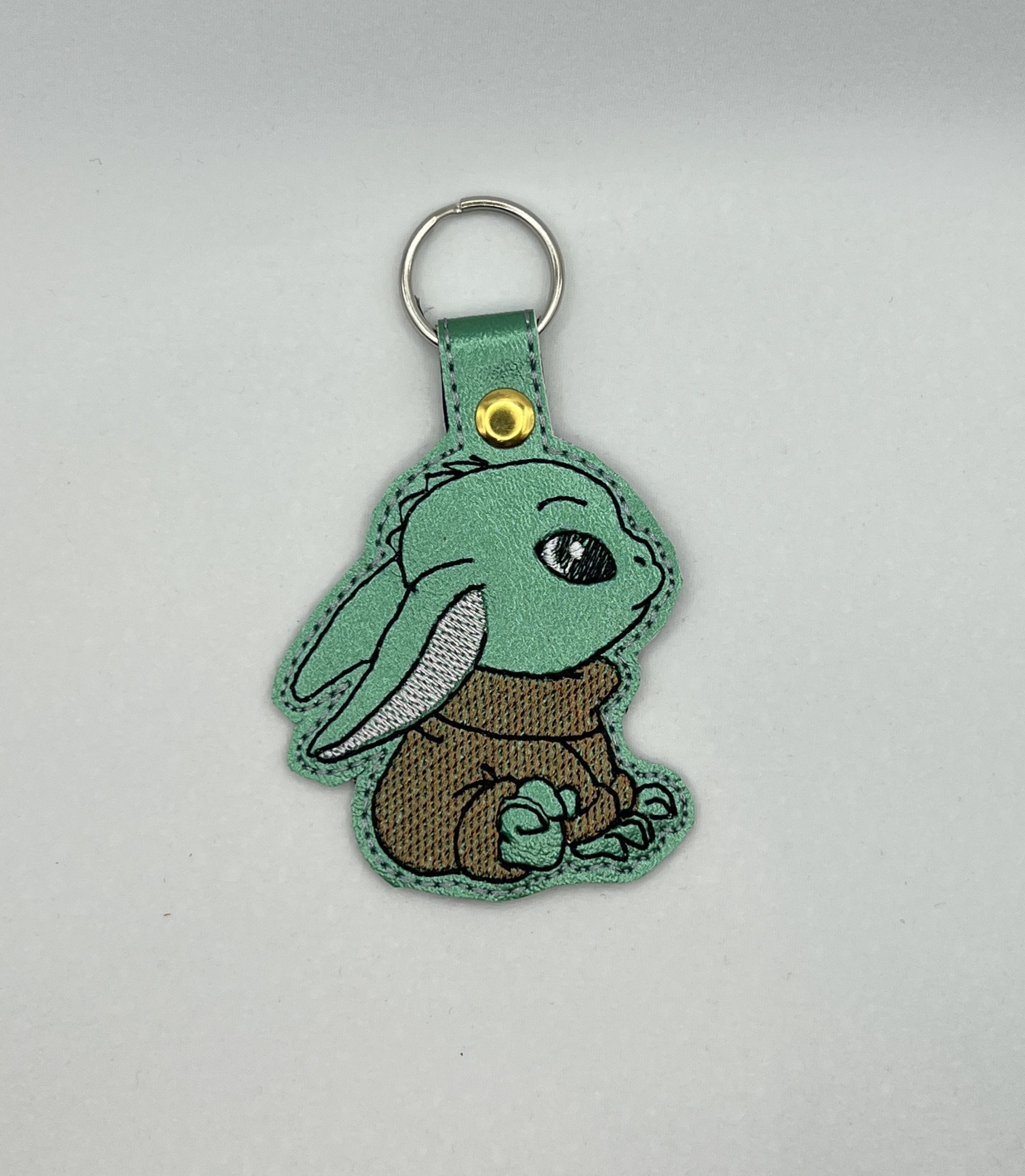 Green Alien Vinyl Embroidered Snap Tab Key Chain